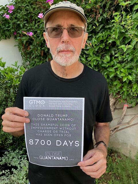 Albert Valencia, in Irvine, California, marks 8,600 days of Guantánamo’s existence on July 28, 2025, and calls on Donald Trump to close it.