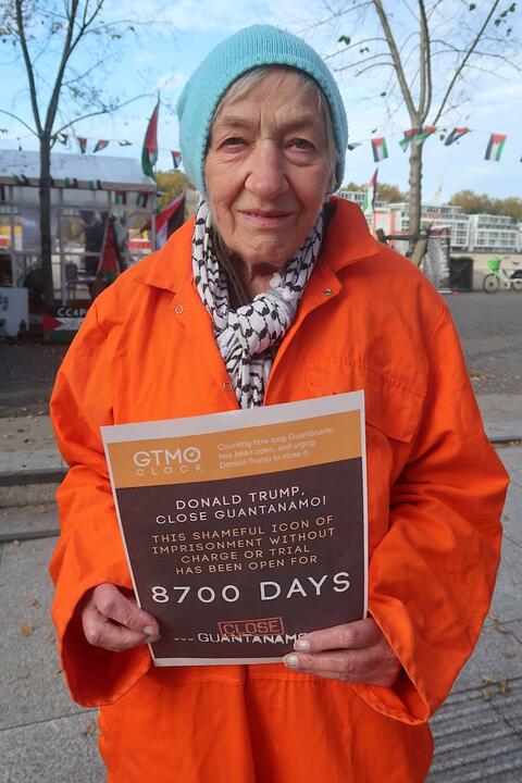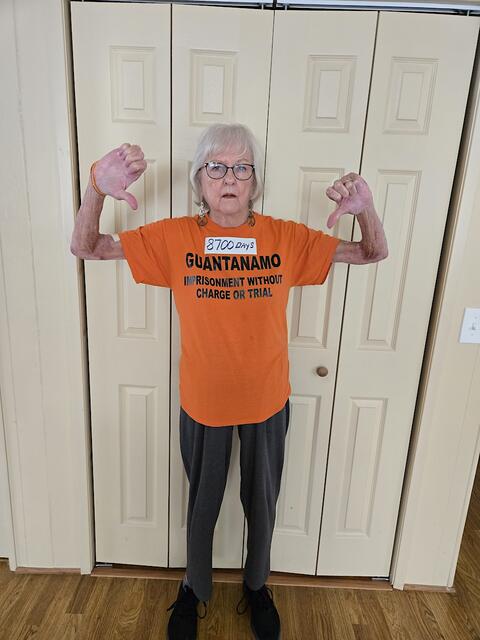 Dorrine Marshall, in Irvine, California, a longtime supporter of the Close Guantánamo campaign, marks 8,700 days of the prison’s existence on November 5, 2025, and calls on Donald Trump to close it.