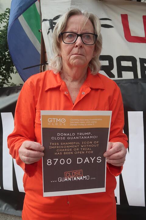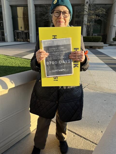 Helen Schietinger of Witness Against Torture marks 8,500 days of Guantánamo’s existence on April 19, 2025, and calls on Donald Trump to close it. Helen is one of the regular participants in the "First Wednesday" monthly vigils for Guantánamo’s closure outside the White House, which are part of the global monthly vigils for the prison’s closure that have been taking place across the U.S. and around the world for the last two years.