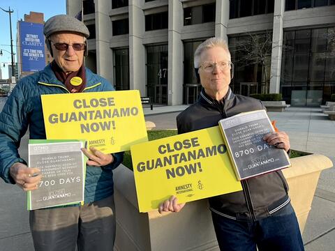In Mexico City, Alli McCracken of Amnesty International marks 8,400 days of Guantánamo's existence on January 9, 2025, and calls on President Biden to take further steps to close it before he leaves office, at a global vigil for the prison's closure.