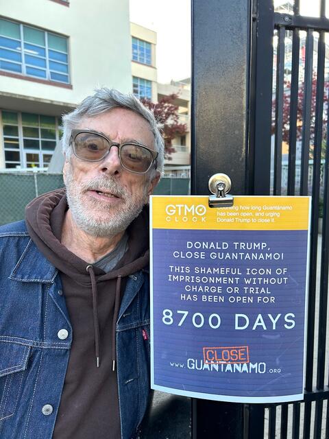 Jon Krampner, in Los Angeles, marks 8,500 days of Guantánamo’s existence on April 19, 2025, and calls on Donald Trump to close it. Jon is one of the regular participants in the "First Wednesday" monthly vigils for Guantánamo’s closure in Los Angeles which are part of the global monthly vigils for the prison’s closure that have been taking place across the U.S. and around the world for the last two years.