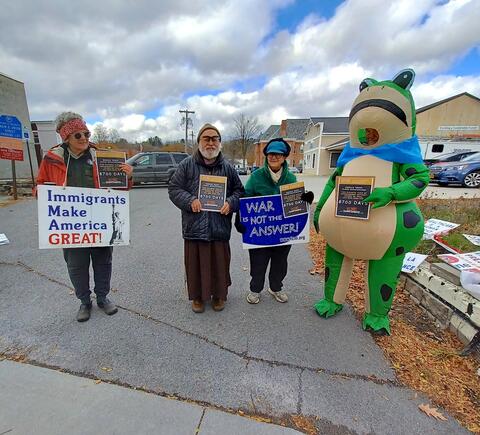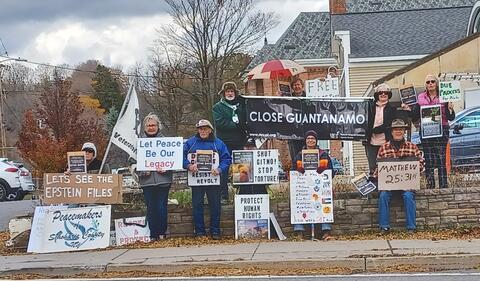 Members of the Peacemakers of Schoharie Country in Cobleskill, NY on November 8, 2025, during their monthly vigil for Guantánamo's closure, part of the monthly global vigils that have been taking place across the U.S. and around the world for the last three years.